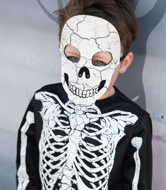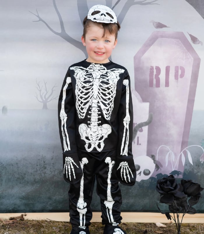 The ultimate statement piece for your next Halloween party by Great Pretenders- the Glow in the Dark Skeleton Shirt, Pants & Mask! Made with high-quality materials, this set is not only comfortable to wear but also durable enough to withstand all-night trick-or-treating. The skeleton design is made using special glow-in-the-dark ink that is charged by light, giving you an otherworldly look in low-light environments. The shirt features long sleeves and a crew neck, while the pants are designed with an elastic waistband for a comfortable fit. The matching skeleton mask completes the set, adding an extra layer of spookiness to your look. Get ready to light up the night in this epic Glow in the Dark Skeleton Set!