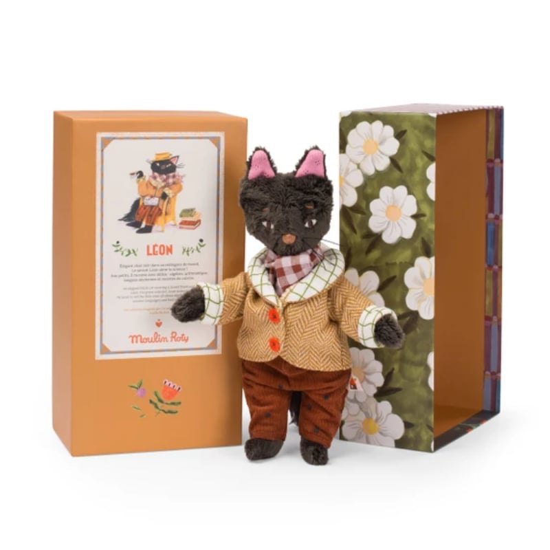 Come on an adventure with the Minouchkas, the new collection of whimsical characters from Moulin Roty! Léon the cat is a charming articulated doll designed by Lucille Michieli. He loves science and his tweed frock coat! Léon promises tender moments and unforgettable adventures for little ones.